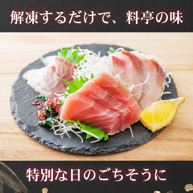 独自の急速冷凍技術(-30℃以下)で旨みをぎゅっと閉じ込め、ご家庭でもまるで獲れたてのような鮮度抜群のお刺身盛り合わせをお楽しみいただけます。