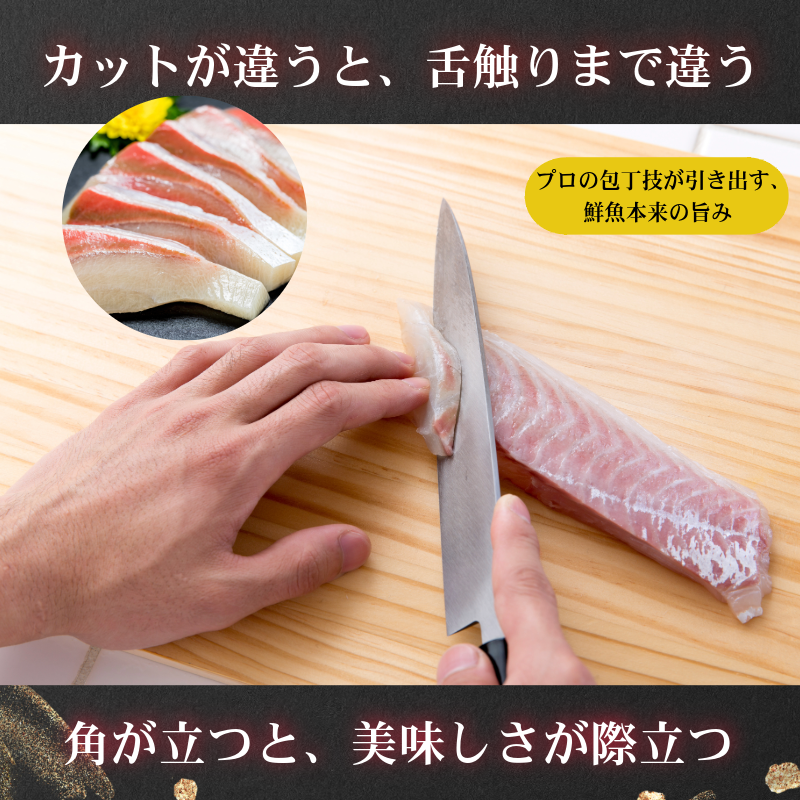 山口県長門市の仙崎港で水揚げされた、とれたての魚をその日のうちに丁寧に刺身へ加工。