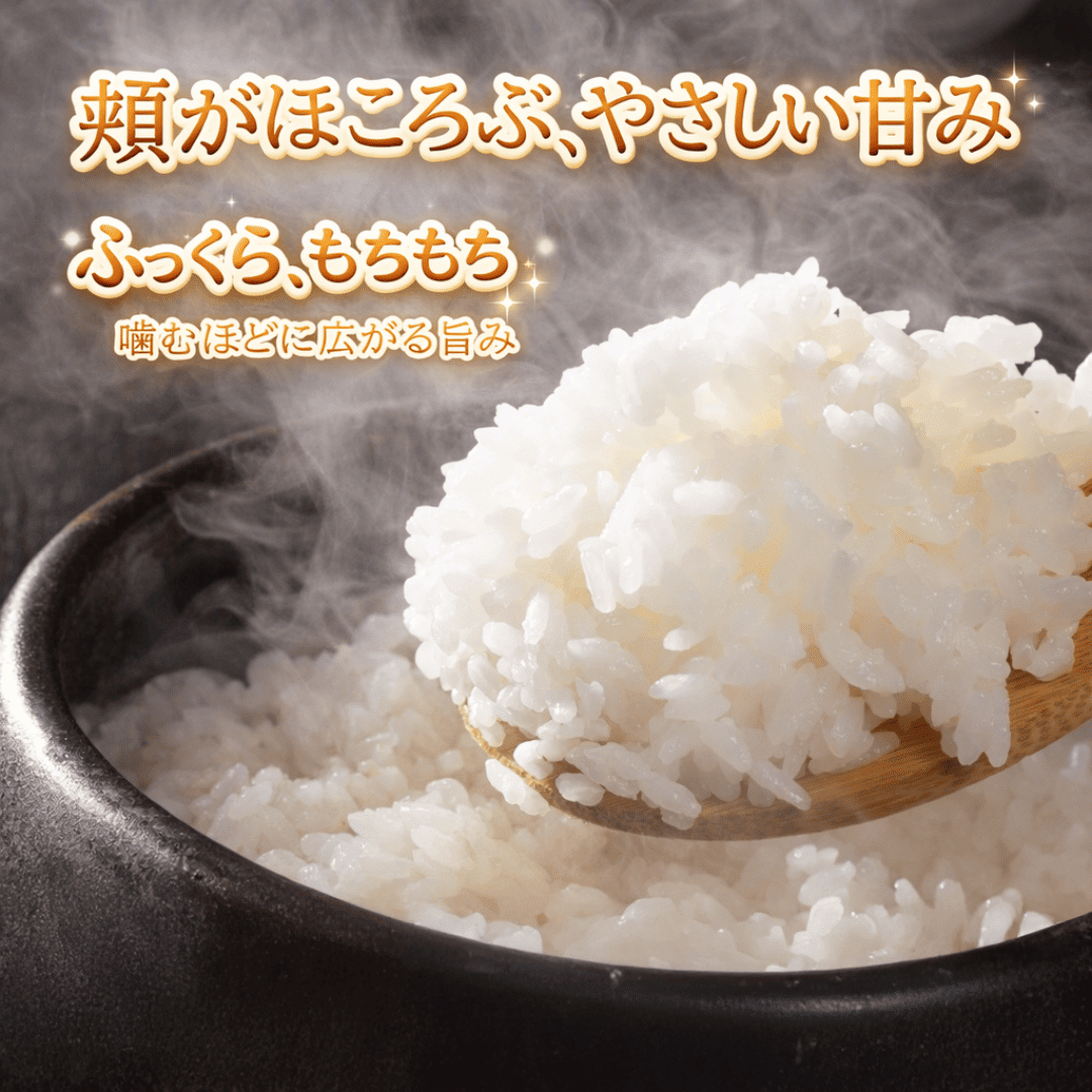 粘り・甘み・香りのバランスがよく、ふっくらとした炊き上がりが特徴です。